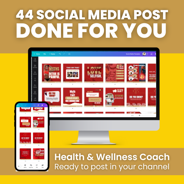 Social Media Post for Health and Wellness Coach, Ready to Post, Instagram Post with Content Calendar Planner, Design and Canva Template