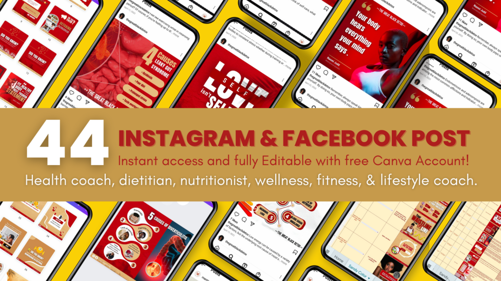 Social Media Post for Health and Wellness Coach, Ready to Post, Instagram Post with Content Calendar Planner, Design and Canva Template